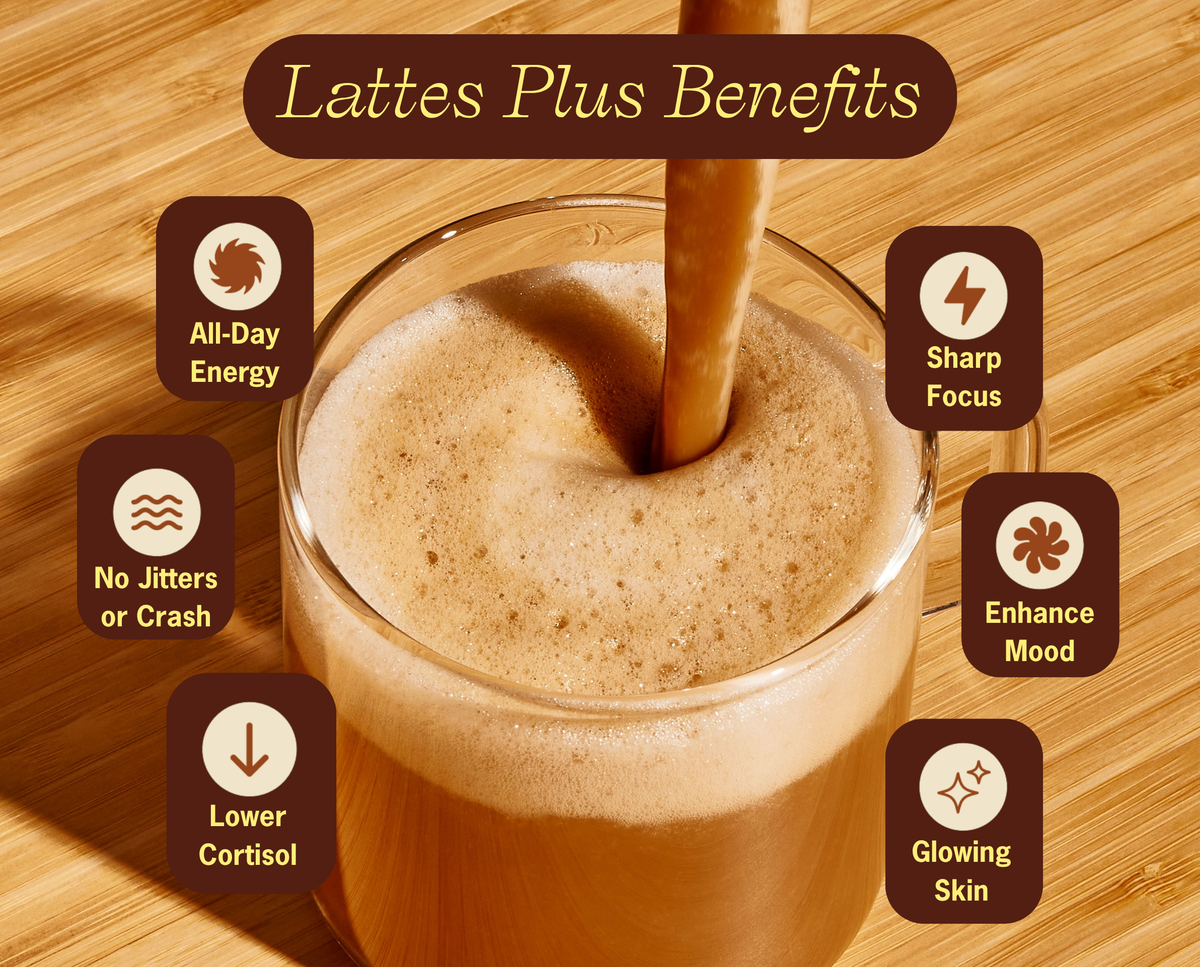 Enjoy decadent café-style lattes packed with adaptogens, mushrooms, and superfood creamer for energy, focus, and gut health.
