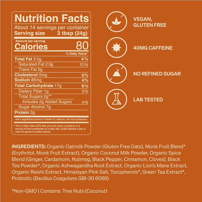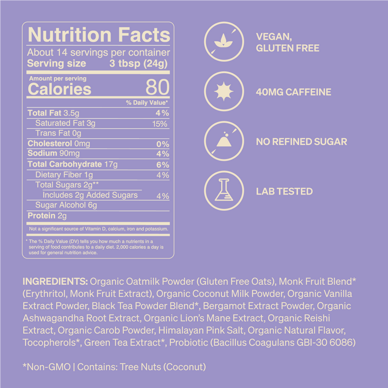 Absolutely—all our ingredients are vegan and do not contain gluten. Our oat milk is made from gluten free, Organic and glyphosate-free oats. However, even though the ingredients we use contain no gluten, our SuperLattes as a whole are not yet certified gluten-free. This certification process takes time, but it is one that we are currently working on, so hang tight!